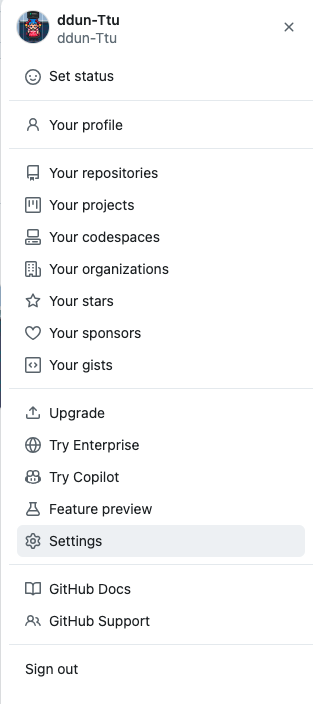 Developer settings을 누르면 좌측에 3개 메뉴가 뜨는데 하단에 Personal access tokens를 누른 후