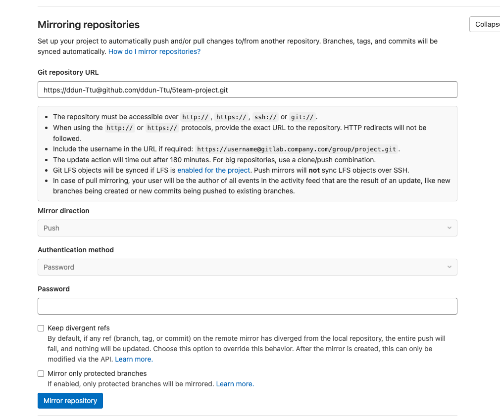 깃랩에서 미러링하기